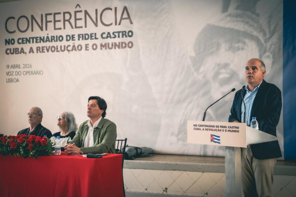 (Lisboa, 20 de abril de 2026) La conferencia "No Centenário de Fidel Castro – Cuba, a Revolução e o Mundo", organizada por la Asociación de Amistad Portugal-Cuba, reunió a representantes de diversas organizaciones políticas y sociales en la Voz do Operário. El evento analizó la trayectoria del líder cubano y su influencia en el panorama geopolítico actual. Paulo Raimundo, Secretario General del Partido Comunista Portugués, destacó el papel del pensamiento de Fidel Castro en la lucha por la soberanía de los