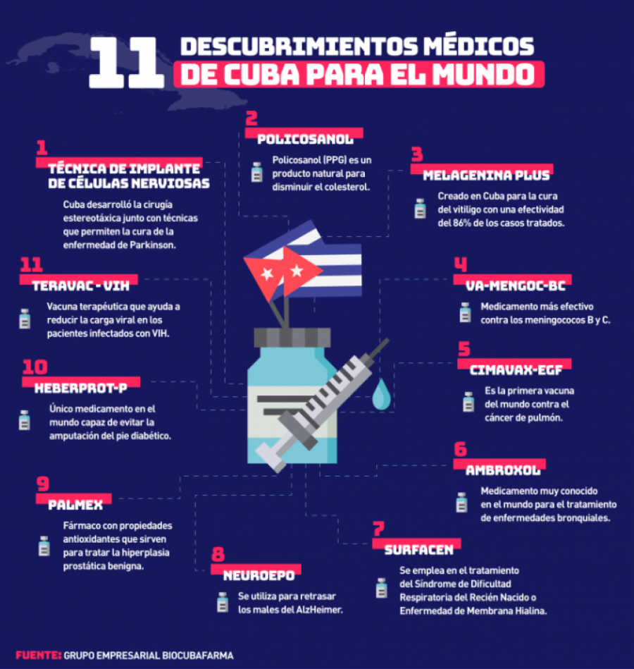Cuba puede presumir de extender la esperanza de vida de los enfermos de cáncer de pulmón en estado avanzado, impedir la amputación de extremidades en los diabéticos y de salvar a miles de recién nacidos, por mencionar solo algunos de sus logros.