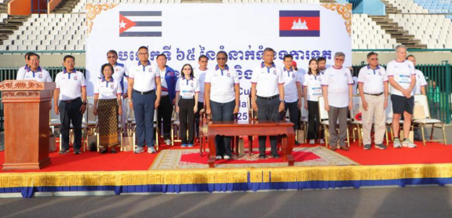 PHNOM PENH, 14 diciembre de 2025. - Con una nutrida participación se disputó hoy en el Estadio Olímpico de esta capital el Maratón de la Amistad, dedicado a festejar el 65 aniversario del establecimiento de relaciones diplomáticas entre Cuba y Camboya.
