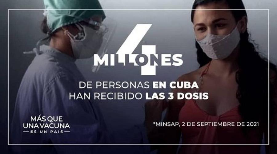 Según el último informe del Ministerio de Salud, publicado en su página web, cinco millones 703 mil 221 cubanos tienen una dosis de los productos nacionales, y con una segunda ya hay cuatro millones 671 mil 645.