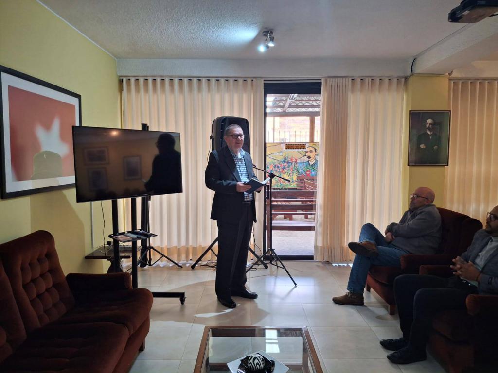 Quito, 10 de octubre de 2025. Matutino especial en la Misión Estatal Cubana en honor a la Jornada Camilo - Che y al inicio de la lucha por su independencia marcado con el Grito de Yara y el estallido de la Guerra de los Diez Años en 1868. Esta fecha marca el momento en que Carlos Manuel de Céspedes dio el paso inicial hacia la liberación de España en su finca La Demajagua. El segundo secretario Julio César Crespo rememora de forma sencilla el comienzo de la primera guerra de independencia cubana contra España.
