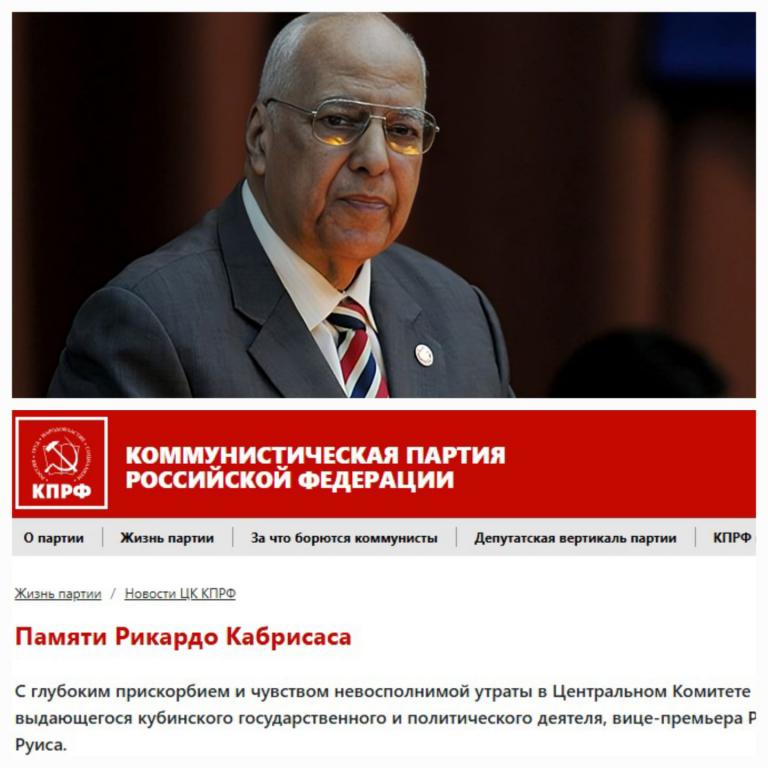 Moscú, 17 de septiembre. Un mensaje del Partido Comunista de la Federación de Rusia, firmado por el Presidente de su Comité Central, Guennadi Ziugánov, fue publicado en la página oficial de la organización en memoria del Viceprimer Ministro cubano, Ricardo Cabrisas Ruiz.