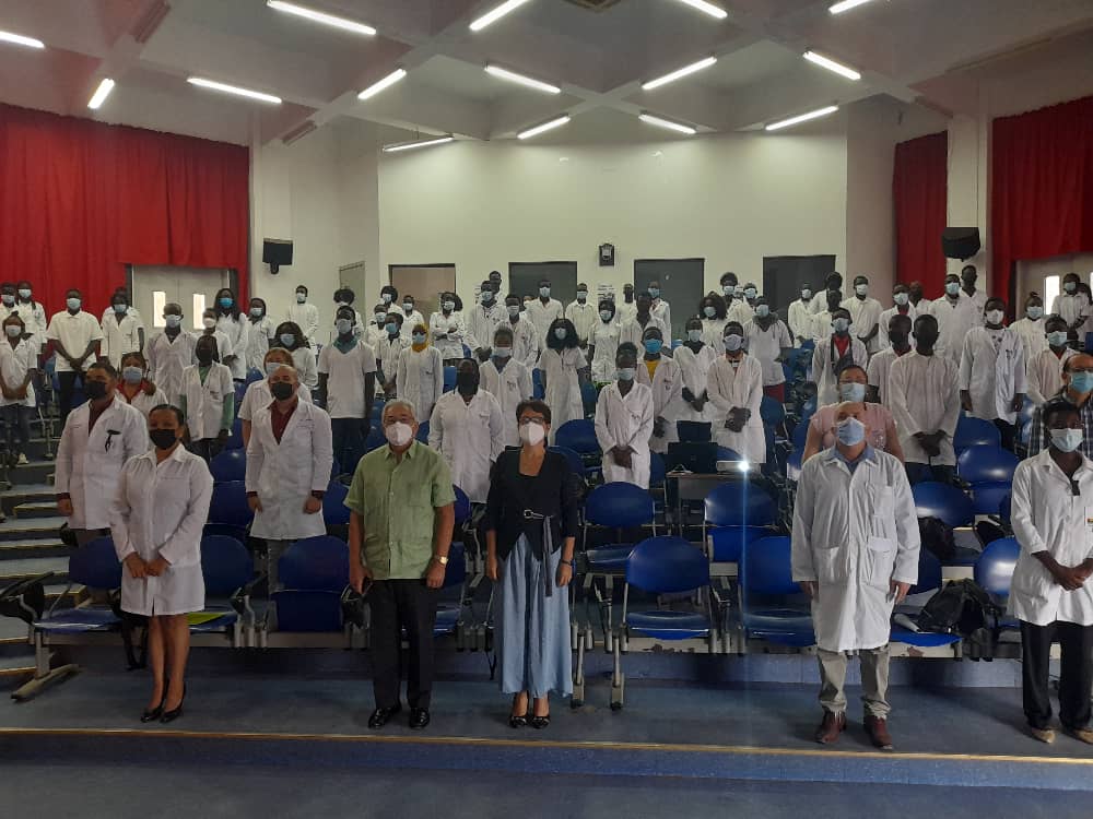 Ofrecen merecido reconocimiento de los estudiantes de la Facultad de Medicina “Raúl Díaz Argüelles” de Guinea Bissau a sus profesores en acto político cultural celebrado en dicha institución; el cual estuvo presidido por el Embajador de Cuba y la decana cubana de la facultad. Los estudiantes manifestaron su agradecimiento infinito a Cuba y a su claustro de profesores, por la bella labor educativa que desarrollan, “sin ustedes fuera imposible convertir en realidad nuestro sueño de ser médicos”.