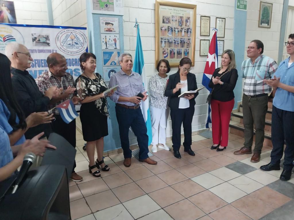 Acompañaron a Trujillo el Embajador de Cuba en el país centroamericano, Juan Roberto Loforte Osorio, y el jefe de la Brigada Educativa Cubana en Honduras, Rolando Rodríguez.