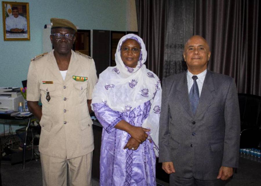 Niamey, 14 de abril; 2023. La ministra de Medio Ambiente y Lucha contra la Desertificación de la República de Níger, Sra. Garama Saratou Rabiou, acompañada por el secretario General de su Ministerio, Sr. Abdou Ibrahim Malick recibieron el pasado viernes en la mañana al embajador de Cuba, Jorge Hadad Capote, con quien intercambiaron sobre diversos temas de interés general.