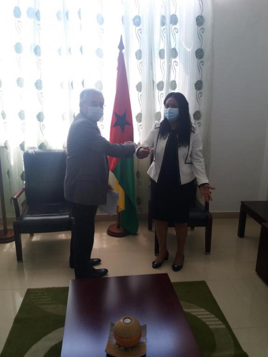 La Dra. Suzi Carla Barbosa, Ministra guineense de Negocios Extranjeros, Cooperación Internacional y de las Comunidades, agradeció la colaboración que presta Cuba en la esfera de la salud con sus Brigadas Médicas (BMC) en numerosos países, incluido Guinea Bissau, en un encuentro con el embajador de la mayor de las Antillas en este Estado de África occidental, Dr. C Raúl de la Peña Silva. Destacó especialmente la labor desarrollada por la brigada “Henry Reeve” que apoya al personal de la salud guineense en el enfrentamiento a la COVID-19 en su país. Trasmitió el agradecimiento del gobierno y el pueblo de Guinea Bissau por la solidaridad incondicional de Cuba, así como por la rapidez con que se respondió a la solicitud realizada. El Embajador visitó la sede de la Cancillería, como parte de la evaluación de los tres meses de trabajo de la brigada “Henry Reeve” en Guinea Bissau.
