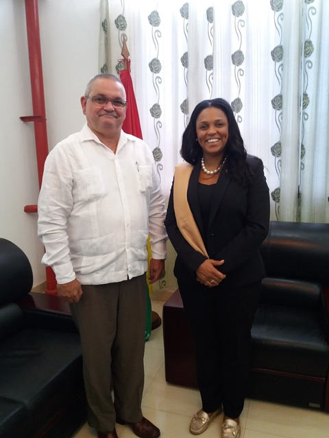 Bissau, 14 de octubre de 2019.- La Ministra de Negocios Extranjeros, Cooperación Internacional y las Comunidades de Guinea Bissau, Suzi Carla Barbosa, recibió hoy en la mañana al Embajador cubano, Tomás Lorenzo Gómez, con motivo de su término de misión.