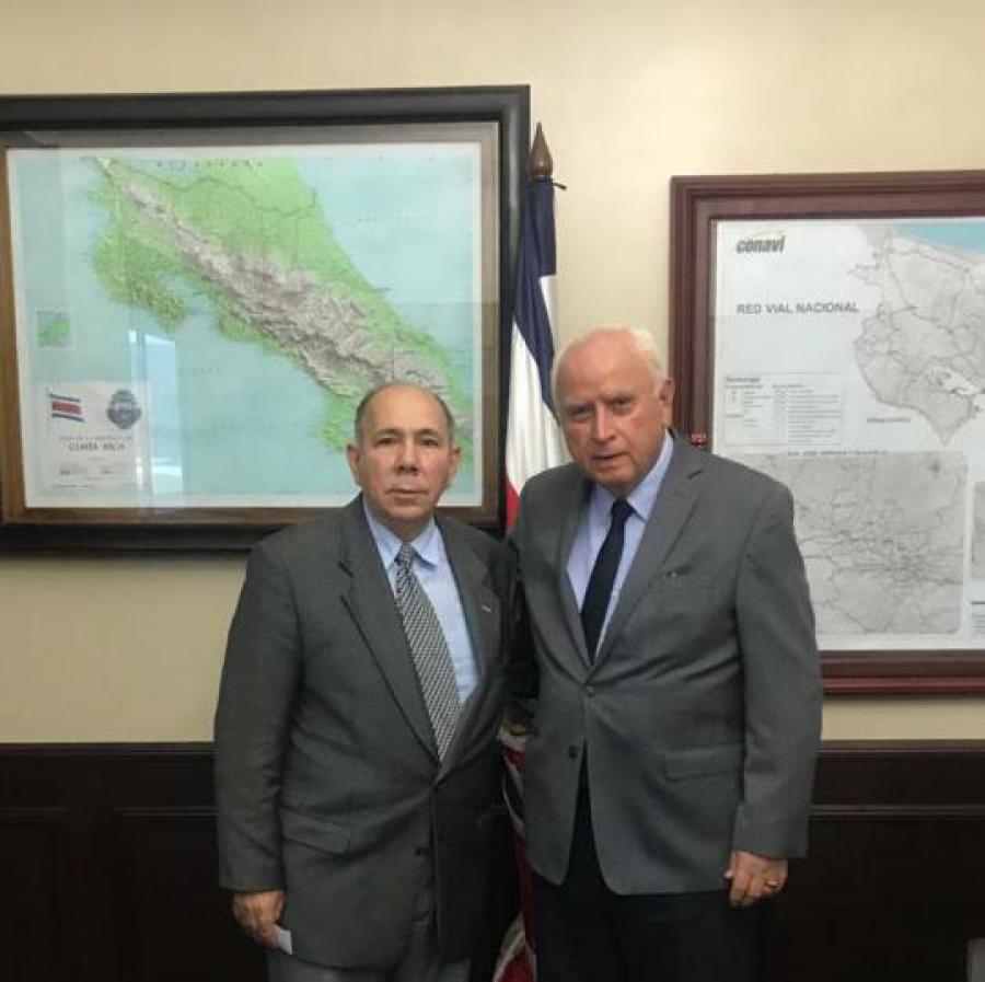 COSTA RICA, 19 de noviembre de 2018.- El ministro de Obras Públicas y Transporte (MOPT) de Costa Rica, Sr. Rodolfo Méndez Mata, recibió el viernes 16 de noviembre en la sede de este ministerio al embajador de Cuba en San José, Danilo Sánchez Vázquez. Durante el encuentro se abordaron temas relativos a la reunión Extraordinaria del Consejo Directivo de la Corporación Centroamericana de Servicios de Navegación Aérea (COCESNA) y la XXIII Asamblea Ordinaria de la Comisión Latinoamericana de Aviación Civil, que se realizarán en La Habana del 19 al 21 de noviembre, eventos al que asistirá una delegación costarricense presidida por el ministro Méndez Mata.