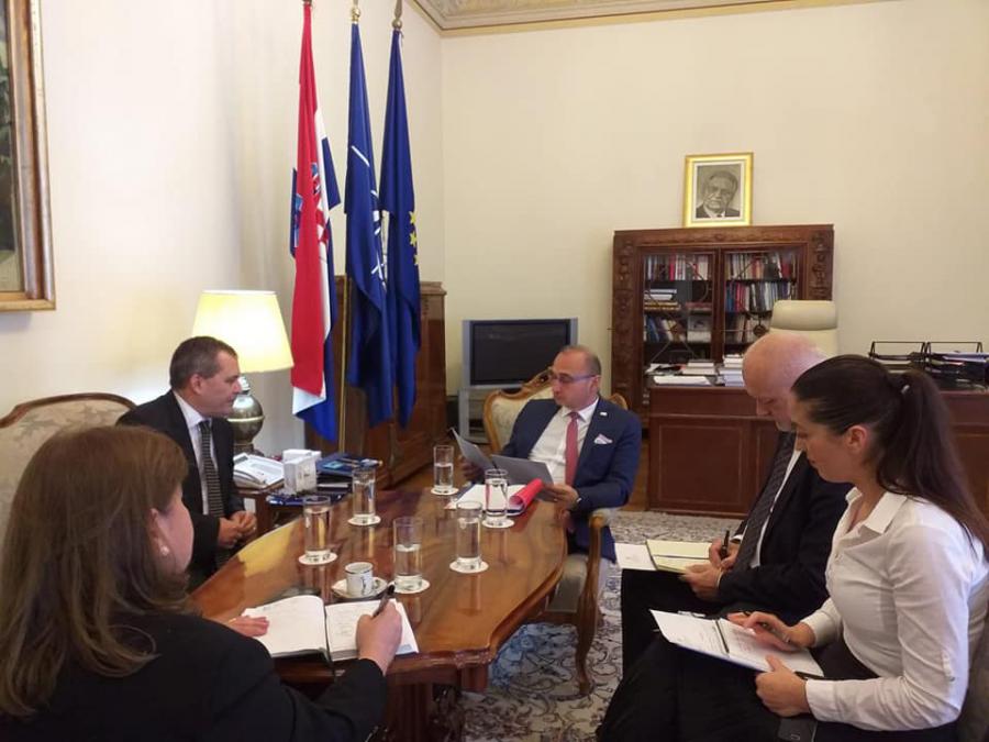 Zagreb, 23 de octubre de 2019. El Ministro de Asuntos Exteriores y Europeos de la República de Croacia, Excmo. Sr. Gordan Grlić Radman, recibió hoy al Embajador de Cuba ante ese país europeo, Excmo. Sr. Juan Antonio Fernández Palacios, en la sede del Ministerio.