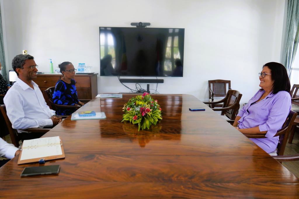 Victoria, 11 de diciembre: Iraida de la Caridad Guerrero Zuñíga, embajadora designada de la República de Cuba en la República de Seychelles, realizó una visita de cortesía al ministro de Relaciones Exteriores y Diaspora, Barry Faure, en la Maison Quéau de Quinssy, sede de la Cancillería seychellense.