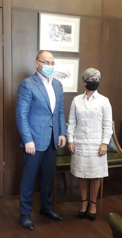 Kiev, 14 de julio de 2020- El Ministro de Salud de Ucrania, Maxim Stepanov sostuvo encuentro con la Embajadora de Cuba en ese país, Natacha Díaz Aguilera en la sede del ministerio que él preside.