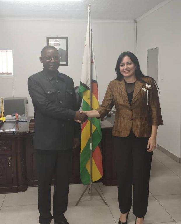 Al recibir a la Jefa de Misión en el Ministerio, Sanyatwe resaltó los históricos vínculos bilaterales y las potencialidades de los nexos, con agradecimiento al apoyo de la isla caribeña a la lucha por la independencia y al desarrollo de Zimbabwe.