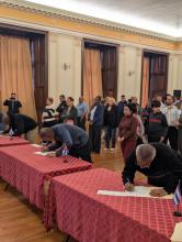 Nueva York, 22 de abril de 2026 —Miembros de la Misión Permanente de Cuba ante las Naciones Unidas suscriben hoy la iniciativa “Mi firma por la Patria”, como parte de las acciones que dan continuidad a la conmemoración del aniversario 65 de la proclamación del carácter socialista de la Revolución Cubana.