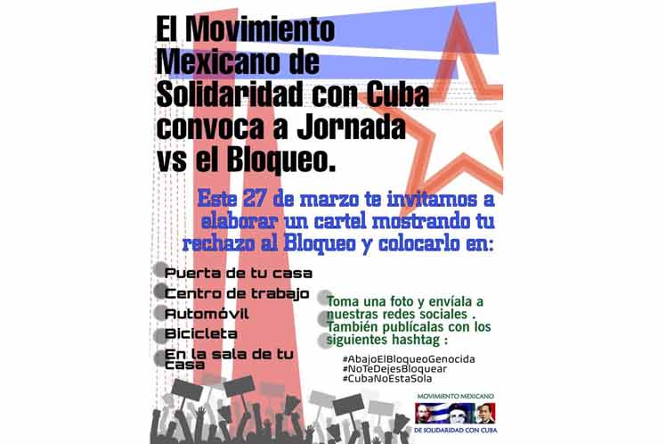 La marcha será este 27 de marzo por la Ciudad de México hasta concentrarse frente a la sede diplomática estadounidense donde se realizará un mitin de repudio a la política hostil del gobierno de Washington contra Cuba.