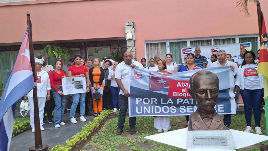En acto de reafirmación revolucionaria, se reúnen cubanos residentes en Mozambique, miembros de la Brigada Médica Cubana en este país y representantes de las organizaciones de los graduados mozambiqueños en Cuba para condenar el cruel e inhumano Bloqueo que desde hace más de seis décadas impide el desarrollo económico de la isla.