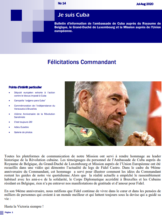 Nous mettons à votre disposition le n° 14 du bulletin "Je suis Cuba"