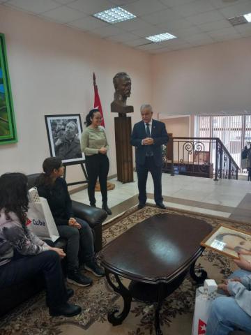 El embajador Julio Garmendía Peña entregó los premios a Luis Enrique, Laura Beatriz y Linda, hijos de ciudadanos cubanos residentes en la capital rusa, quienes plasmaron a través de sus dibujos, la visión de cada uno sobre el Apóstol.