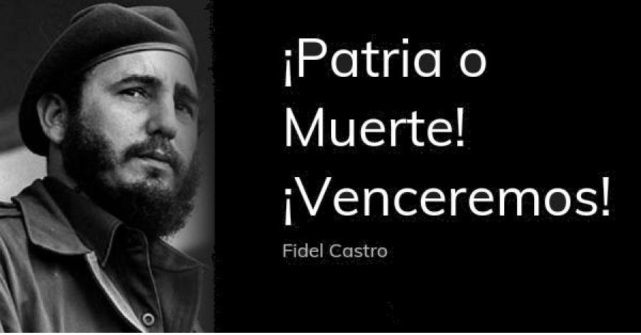 El día que aquí se decidió gritar Patria o Muerte, no estábamos jugando a los soldaditos. Estábamos cambiando infiernos, estábamos fundando un pueblo. Martí también gritó «Independencia o Muerte» porque sabía que no había otra forma de salvar la patria. El día que aquí se decidió gritar Patria o Muerte, no se intentaba imponer una doctrina, sino que se le rendía respeto a quienes murieron por lograr la independencia. El día que Fidel gritó Patria o Muerte, todo este país lloraba porque nos habían matado cien hermanos en una explosión y 400 estaban heridos. La CIA los mató. El odio los mató. Para que lo sepan bien. Lo gritamos por los 34 desaparecidos de esa explosión, por las decenas de hombres que quedaron discapacitados de por vida, por las viudas, por los huérfanos, por las madres que querían desvanecerse. Y tuvo que ser Patria o Muerte en Girón cuando vinieron a invadirnos y a matarnos. Y tuvo que ser Patria o Muerte en el Escambray cuando mataron familias enteras a tiros. Y tuvo que ser Patria o Muerte cuando derrumbaron un avión con 73 cubanos saliendo de Barbados. Patria o Muerte es nuestra única verdad, nuestra declaración, nuestra denuncia, nuestro llanto, nuestro veredicto y será también nuestro epitafio.
