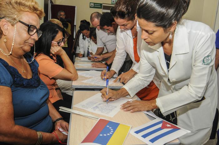 La Habana, 10 de septiembre de 2018.- Con el mismo amor con que un día llegaron a la tierra de Bolívar para sanar, médicos internacionalistas cubanos respaldan el legítimo derecho de ese pueblo hermano a su autodeterminación. Lo hacen como parte del apoyo que brinda nuestro país a Venezuela, y que en la jornada de ayer patentizaron con su firma los trabajadores del Instituto de Neurología y Neurocirugía de La Habana.