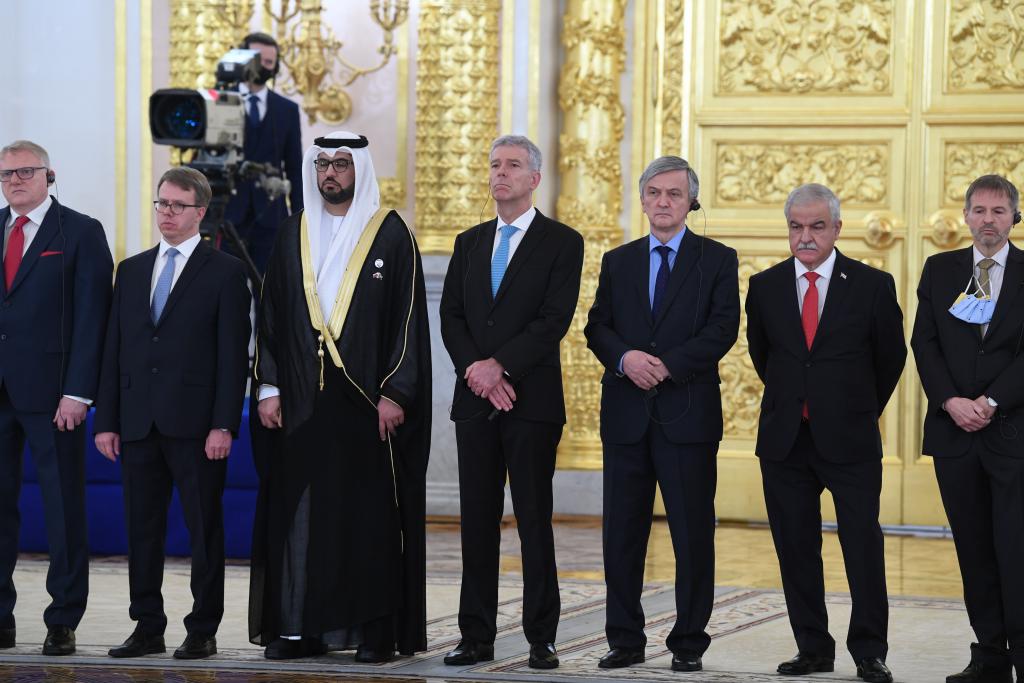 Durante la ceremonia oficial, celebrada en la Sala de Alexander del Gran Palacio del Krémlin, otros 19 embajadores también hicieron entrega de sus credenciales al jefe de Estado ruso.