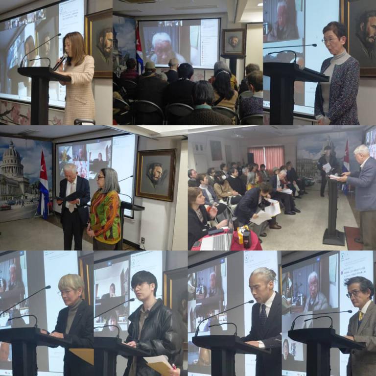 Saiichi Omura, del Movimiento Shiso Undo; Teruyo Matsutake, de la Asociación de Amistad Japón-Cuba; Hirohide Tabata de la Asociación de Voluntarios en Defensa de la Soberanía de Cuba; Yasuhiro Tanaka, del Comité de Solidaridad Japón-Asia-África-América Latina; Shizuka Mikami, del Comité de Intercambio Científico y Tecnológico Japón-Cuba y los académicos Taro Yoshida y Kenjiro Iwamura; intervinieron para ratificar la voluntad de sus organizaciones de apoyar a Cuba, más en las actuales complejas circunstancias y el compromiso a continuar la búsqueda de alternativas para traducir ese apoyo en acciones concretas. Varios de los participantes virtuales, algunos de ellos representantes históricos de la solidaridad, se sumaron a estas palabras. La actividad concluyó con la aprobación de la Declaración Especial adjunta titulada “La administración Trump debe respetar la soberanía y el derecho a la autodeterminación de Cuba” y el llamado a continuar la campaña de recogida de firmas a favor de Cuba, iniciada por la Asociación de Voluntarios en Defensa de la Soberanía de Cuba.