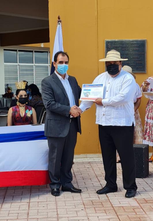 Panamá, 22 de noviembre de 2021. La Brigada Médica Cubana del Contingente Henry Reeves, fue reconocida hoy en Acto Cultural efectuado en el Hospital Nicolás Solano, de La Chorrera, en Panamá Oeste. El consejero de la Embajada de Cuba, Norberto C. Escalona Carrillo recibió el reconocimiento, de manos del director regional de salud, Dr. Kevin Castañer.