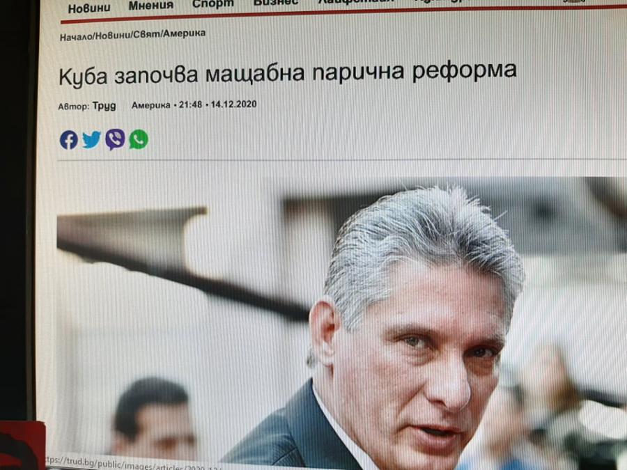 Куба започва мащабна парична реформа от 1 януари 2021 година, съобщиха от кубинското посолство в София и предоставиха информация за това. Името на тази операция, наречена "Да въведем отново ред", не e избрано случайно, защото една от целите е кубинската икономика да стане по-предвидима в очите на чуждестранните инвеститори. Властите вече разкриха някои подробности от реформата, за да успокоят населението. Те заявиха, че това няма да бъде програма за строги икономии в духа на неолиберализма и че "никой няма да бъде оставен без средства".