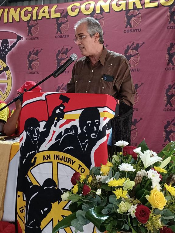 Pretoria, 19 de febrero de 2022.- El Embajador de Cuba en Sudáfrica, Enrique Orta González, participó en el congreso de la Confederación de Sindicatos Sudafricanos (COSATU) de la provincia de Gauteng.