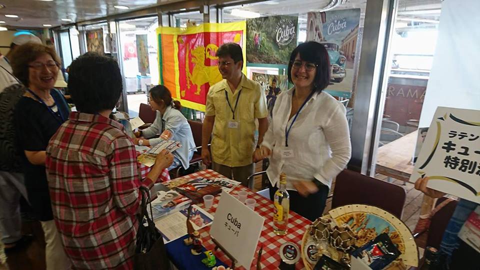 Tokio.- El colectivo de la Embajada de Cuba en esta capital estuvo presente en el Festival Global Verano 2017, celebrado a bordo del buque Crucero por la Paz. La mayor de las Antillas estuvo representada con un stand, en el cual se expusieron muestras artesanales y productos típicos del país, lo cual forma parte de la promoción de Cuba como uno de los países destinos del viaje global número 95 de este crucero, que tendrá lugar entre los meses de agosto y noviembre de 2017.