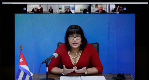 En el marco del evento, la viceministra cubana subrayó el singular impacto de la pandemia para nuestro pueblo debido al recrudecimiento oportunista y sin precedentes del bloqueo que los Estados Unidos de América impone a Cuba desde hace más de 60 años, que ha impedido el acceso a medicamentos y tecnologías para prevenir y curar la enfermedad. Aseveró que, a pesar de ello, hemos sido capaces de enfrentar la pandemia con positivos resultados, gracias a un sistema de salud pública de calidad, gratuito y de alcance universal, y al desarrollo de la ciencia cubana.