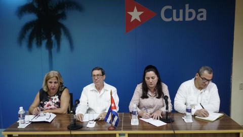 Acompañaron al ministro de Relaciones Exteriores la viceministra primera del Ministerio de Comercio Exterior y la Inversión Extranjera, Ana Teresita González Fraga; la viceministra primera del Ministerio de Economía y Planificación, Leticia Morales González; y el viceministro del Ministerio de la Agricultura, Maury Echevarría Bermúdez.