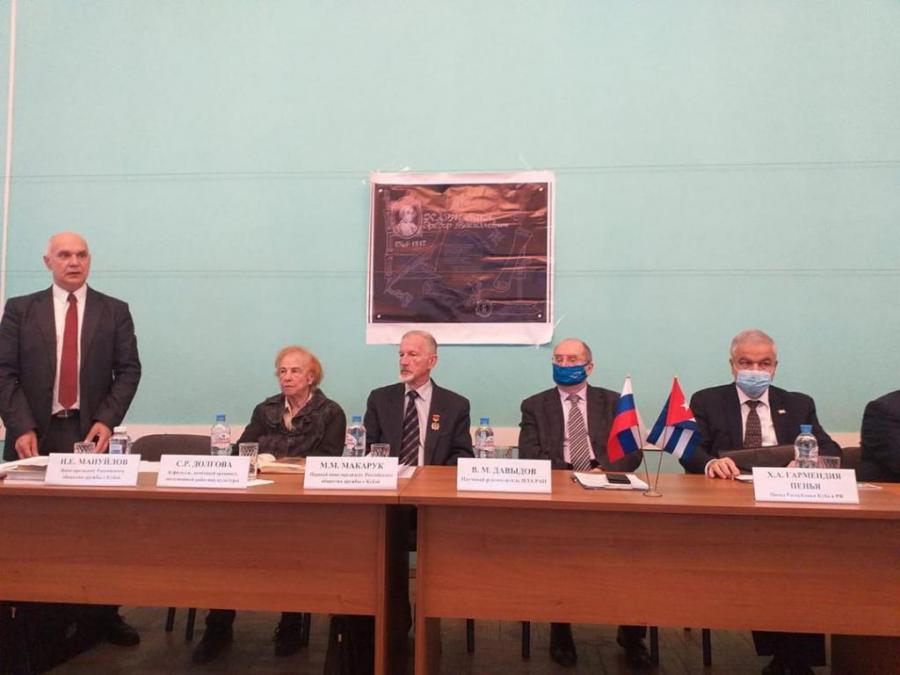Moscú, 22 de octubre de 2021.- El Embajador de Cuba en la Federación de Rusia Julio Garmendía Peña, participó en la Mesa Redonda "Lecturas de Karzhavin”, organizada por la Sociedad Rusa de Amistad con Cuba, de conjunto con el Instituto de América Latina de la Academia de Ciencias de Rusia.