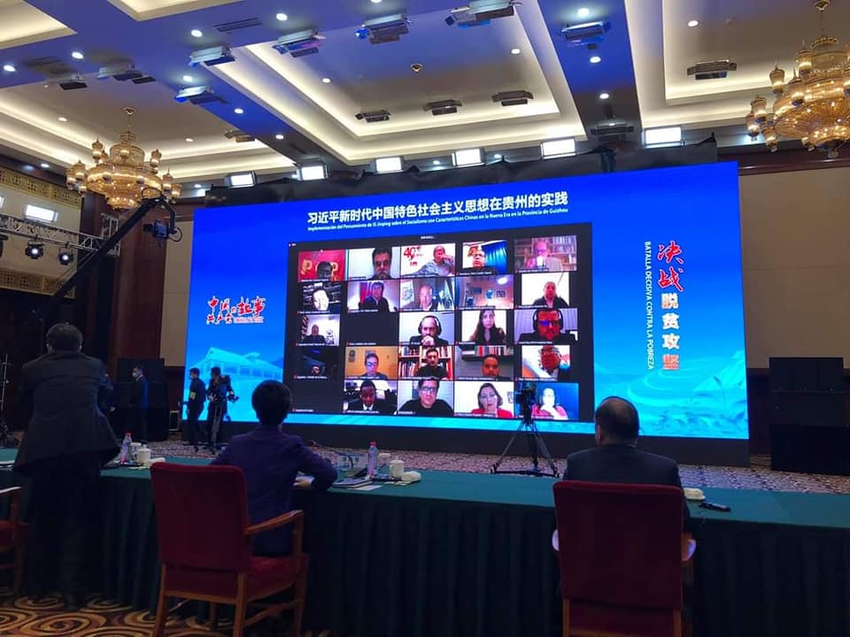 A través de una videoconferencia que se transmitió en vivo en los idiomas chino, inglés y español, el titular del Departamento de Enlace Internacional, ministro Song Tao, el secretario del Comité Provincial del PCCh, Sun Zhigang y la gobernadora Chen Yiqing, se refirieron a los logros alcanzados por la provincia en el enfrentamiento a la pobreza y a la pandemia. Junto a la construcción de una sociedad modestamente acomodada, la erradicación de la pobreza extrema en las zonas rurales constituye uno de los objetivos centrales para homenajear el centenario de la fundación del PCCh en 2021. A nombre de América Latina y el Caribe, hicieron uso de la palabra el vicepresidente de la Asamblea Nacional de Argentina y presidente del Partido Justicialista, José Luis Gioja, y el presidente de la COPPPAL y del PRI de México, Alejandro Moreno Cárdenas.