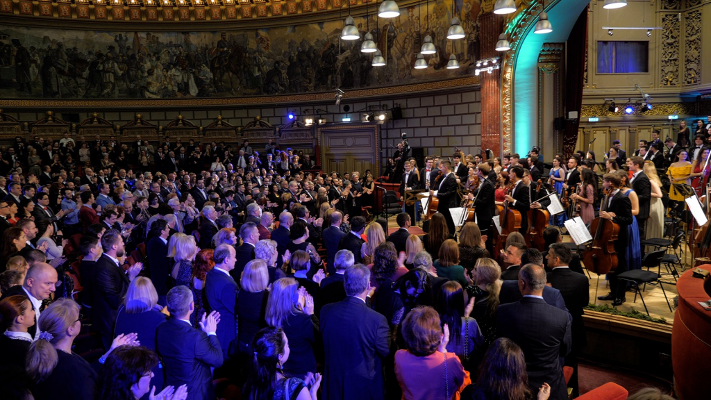 Bucarest, 15 de enero de 2020. En el marco de las celebraciones por el Día Nacional de la Cultura Rumana, el embajador de Cuba, Roberto César Hamilton, invitado por el ministro de cultura, participó en el concierto de gala extraordinaria de la Orquesta Rumana de Jóvenes, desarrollada en el Ateneo Rumano.