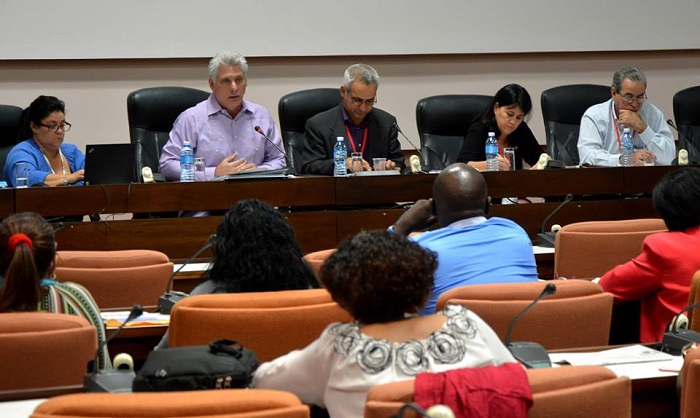 El presidente cubano Miguel Díaz-Canel Bermúdez participa en los debates sobre asuntos de interés para la vida del país que abordan hoy y mañana en el Palacio de Convenciones de La Habana las 10 comisiones permanentes de trabajo de la Asamblea Nacional del Poder Popular.