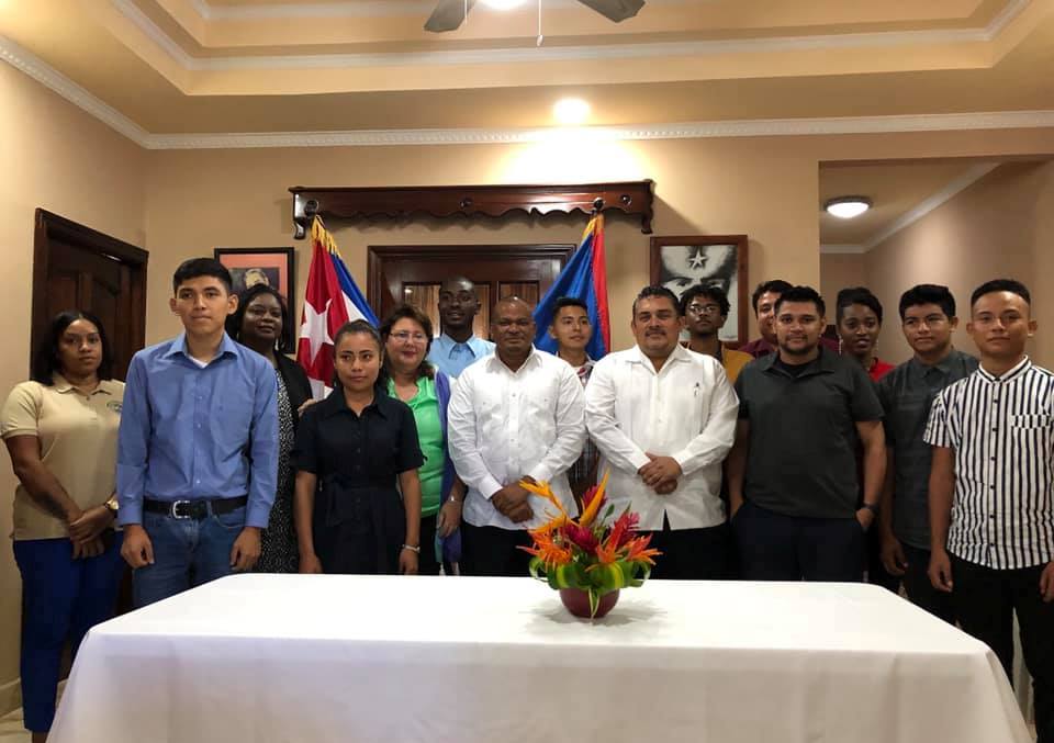 Belmopan. 21 de agosto de 2019. Con la presencia del Honorable Patrick Faber, viceprimer ministro; el Honorable Eladio Aragón, ministro de estado en el Ministerio de Seguridad y la Sra. Deborah Domingo, viceministra de Educación, Juventud, Deporte y Cultura fue realizada, en la sede de la Embajada de Cuba, la actividad oficial de despedida a los 11 estudiantes beliceños a los que les fueron otorgadas becas, para el curso 2019- 2020.