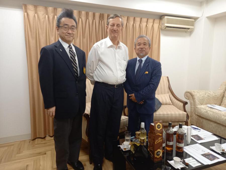 Tokio, 14 de julio de 2022.- Embajador de Cuba en Japón Miguel A. Ramírez Ramos y la Consejera Económico Comercial Katia Monzón se reunieron con el Presidente de la Asociación de Bartenders de Japón Sr. Sakoh Akihiro. En esta se conoció oficialmente la participación de una delegación nipona en el Campeonato Mundial de Coctelería a celebrarse en Cuba, en noviembre de este año.