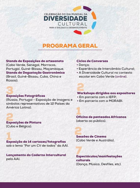 Praia, 31 de mayo de 2021 La Comisión Nacional de la UNESCO en Cabo Verde incluye a Cuba en su programa para conmemorar el "Día Mundial de la Diversidad Cultural para el Diálogo y el Desarrollo", que se celebró el 21 de mayo alrededor del mundo, pero debido al avance de la pandemia en Cabo Verde, se desarrollará en formato reducido y con estrictas medidas de bioseguridad del 3 al 6 de junio en el Palacio de la Cultura Ildo Lobo, ubicado en Plateau, en la ciudad capital de Praia.