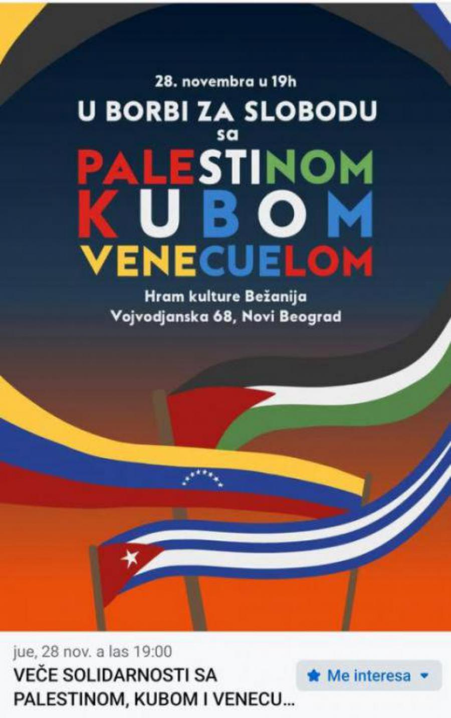 Belgrado, 29 de noviembre de 2024. En el icónico espacio del Templo de la Cultura de Bežani, en el Día de la República, se realizó el jueves 28 de noviembre de 2024, en Nuevo Belgrado, un foro dedicado al apoyo del pueblo cubano, palestino y venezolano.
