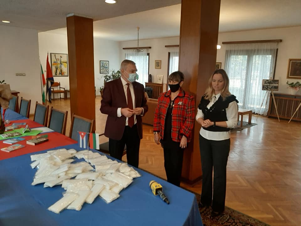En la mañana de hoy 13 de Noviembre de 2020. recibimos en la Embajada de Cuba en Sofía al presidente del partido ABV de Bulgaria, Sr. Rumen Petkov, acompañado de la secretaria general de la Organización Juvenil del partido ABV, Plamena Zayachka, quienes nos visitaron con el objetivo de confirmar la entrega de la primera parte de la donación solidaria que el partido ABV enviará en los próximos días a La Habana, con el objetivo de ayudar a nuestro pueblo a enfrentar la pandemia de la Covid-19.