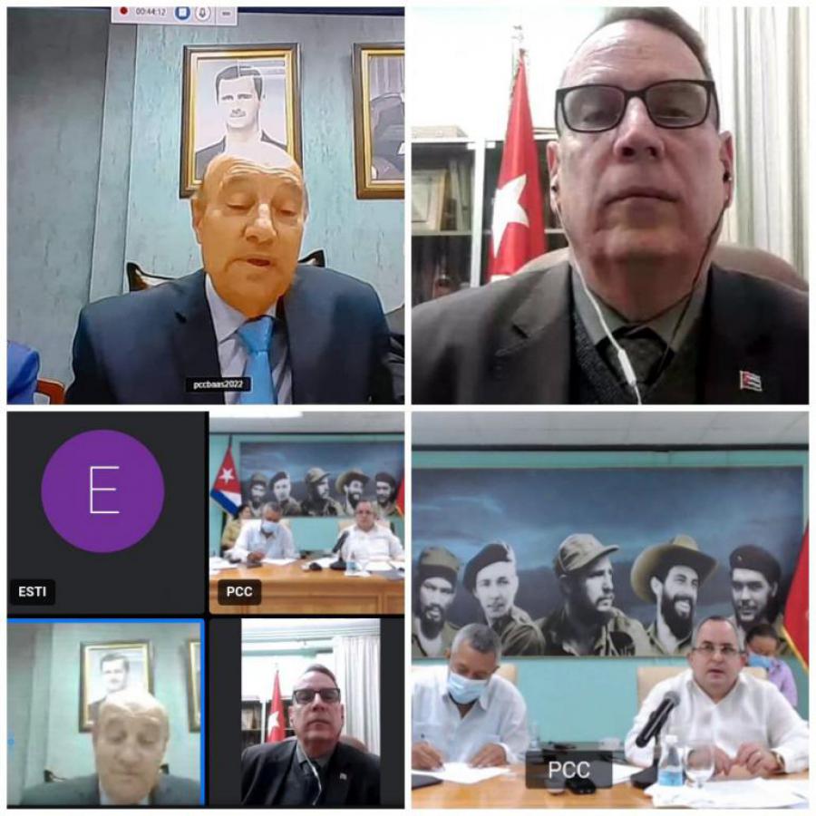 Sostienen intercambio virtual el Partido Comunista de Cuba y el Partido Baaz Árabe Socialista de Siria. La parte Cubana estuvo presidida por el miembro del secretariado del Comité Central del Partido Comunista de Cuba y Jefe del departamento para la Atención al Sector Social, Luis Broche Lorenzo, mientras que la representación siria estuvo dirigida por el miembro del Comando Central del Partido Baaz Árabe Socialista Sirio, Dr. Mahdi Dakhallah.