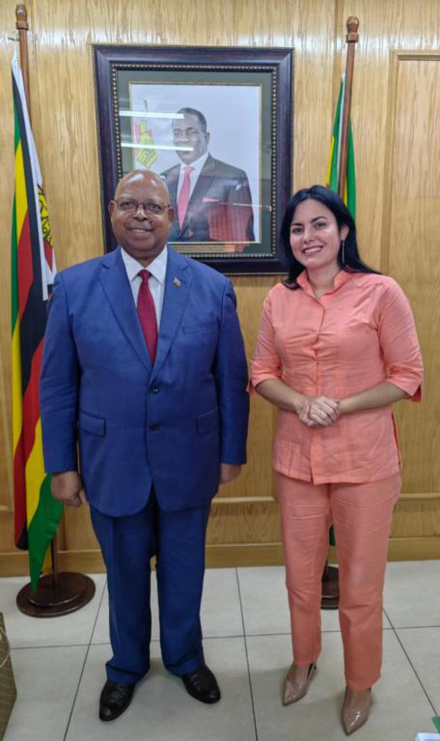 Mudenda recibió a la Embajadora en la sede central del ZANU-PF en un encuentro en el que participaron su Secretario de Asuntos Exteriores, Simbarashe Mumbengegwi, y el Ministro Consejero de la nación caribeña, Luis Enrique González Acosta.