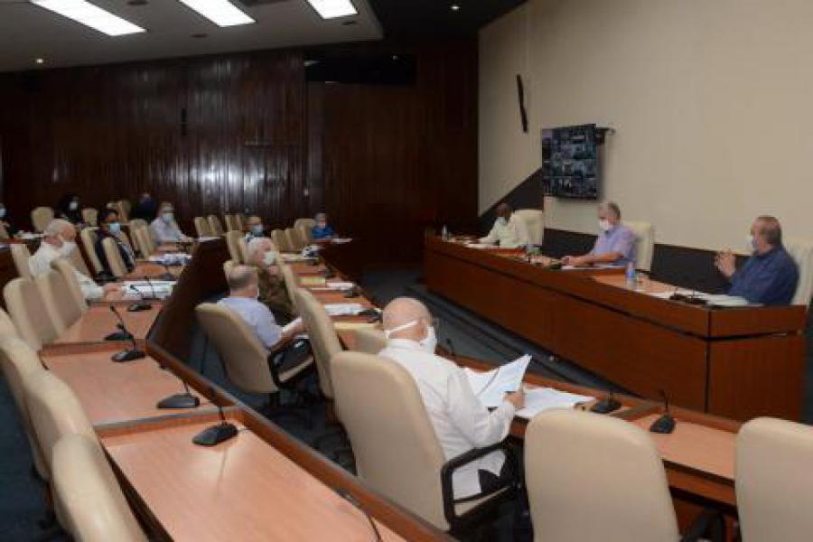 La extensa agenda de la reunión, donde también participaron el vicepresidente de la República, Salvador Valdés Mesa, y todos los viceprimeros ministros, tuvo como primer punto de análisis la presentación por parte del titular de Economía y Planificación, Alejandro Gil Fernández, de los elementos fundamentales que se han definido para llevar a cabo el ajuste del Plan de la Economía del presente año; las indicaciones para elaborar el Plan 2021; y los principales elementos que definen la estrategia económica que seguirá Cuba para enfrentar la situación provocada por la pandemia.
