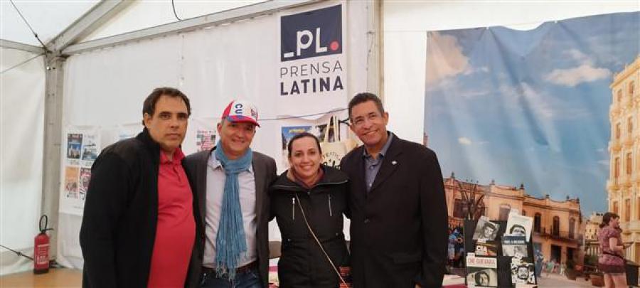El jefe de la delegación cubana en el tradicional foro político-cultural, Yoerky Sánchez, diputado y miembro del Comité Central del Partido Comunista y del Consejo de Estado, la funcionaria del Comité Central Belkis Lay, y los embajadores de Cuba en Francia, Otto Vaillant, y ante la Unesco, Yahima Esquivel, acudieron al estand.