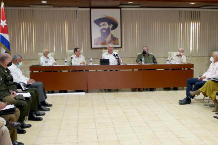 Hacia el final del encuentro el Presidente Díaz-Canel Bermúdez contextualizó el momento que vive Cuba: se refirió al bloqueo recrudecido; a la agresividad de la política imperial de los Estados Unidos, que se manifiesta sobre todo en una estrategia, en una operación de inteligencia bien montada, en una campaña mediática soberbia, brutal contra Cuba, tratando de desacreditar todas las conquistas de la Revolución: “Están actuando en esta estrategia mediática –denunció el dignatario- contra la Revolución cubana de manera intensa, de manera articulada, financiada, bien apoyada tecnológicamente”.
