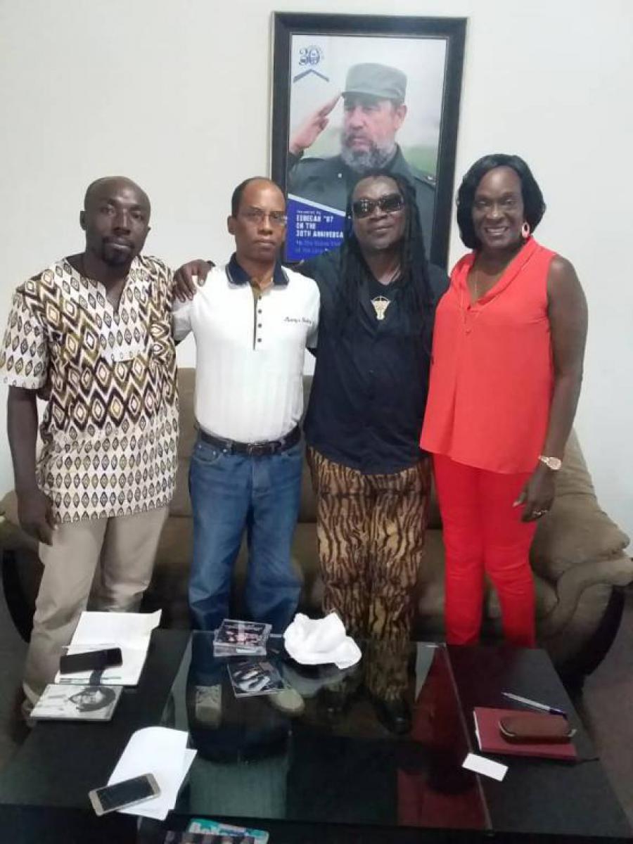 El popular cantante ghanés Amandzeba Nat Brew realizó una visita a la Embajada de Cuba en Ghana. Fue recibido por el Primer Secretario, Julio César Sánchez, y la funcionaria consular Eulalia Cárdenas San Martín.