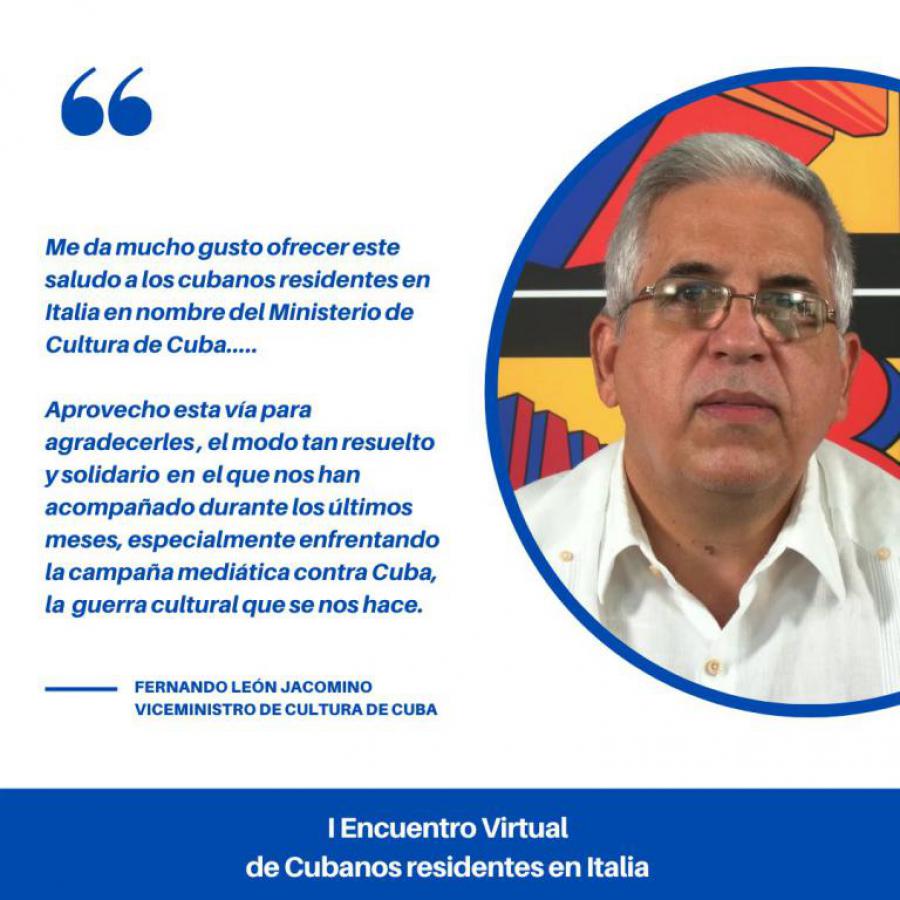 El embajador de Cuba en Italia, José Carlos Rodríguez Ruiz, encomió la excelente realización y calidad de este evento, en el cual se pudo sostener un franco y sustancial intercambio, que tuvo como prioridad el incremento de la necesaria contribución de los hijos de Cuba a favor de la nación; asimismo, felicitó a todos sus organizadores y a quienes apoyaron esta vídeo-reunión.
