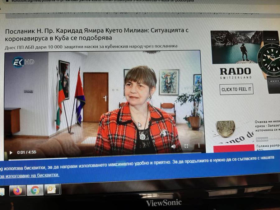 Днес ПП АБВ дари 10 000 защитни маски за кубинския народ чрез посланика. Посланик Н. Пр. Каридад Ямира Куето Милиан: Ситуацията с коронавируса в Куба се подобрява.