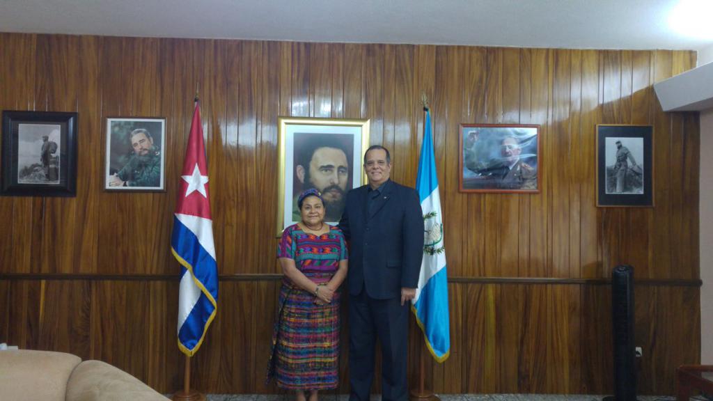 Rigoberta Menchú Tum, Premio Nobel de la Paz (1992), visitó nuestra Embajada e intercambio con Carlos de Céspedes Piedra, embajador de la nación Antillana, con énfasis en la colaboración y lazos de amistad entre nuestros dos países.