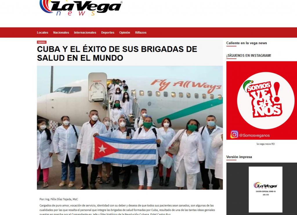 Santo Domingo, 21 de abril. Bajo el título “Cuba y el éxito de sus brigadas de salud en el mundo” destaca prensa digital Dominicana, La Vega News, el apoyo expresado por Cuba a diferentes países en medio de la situación epidemiológica provocada por el Covid-19.
